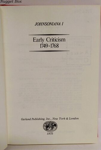 Title | Johnsoniana I - Early Criticism, 1749-1768 |