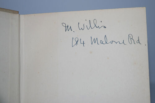 Boards with fading, light marks, Endpapers with discolouration strip, Name and address written in ink on fep.