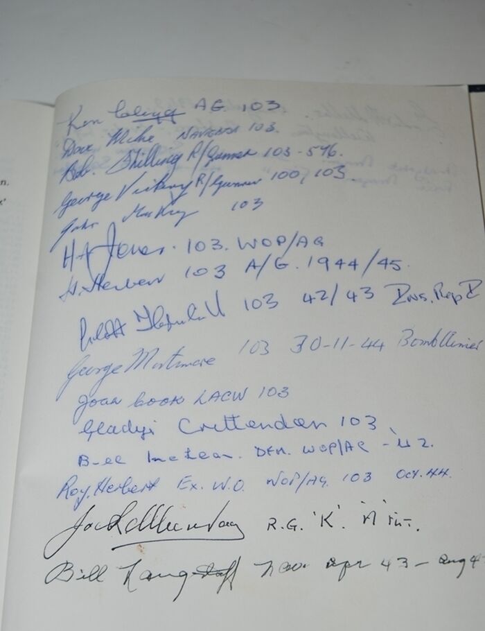 Signed on fep and back page by several members of 103 Squadron RAF.