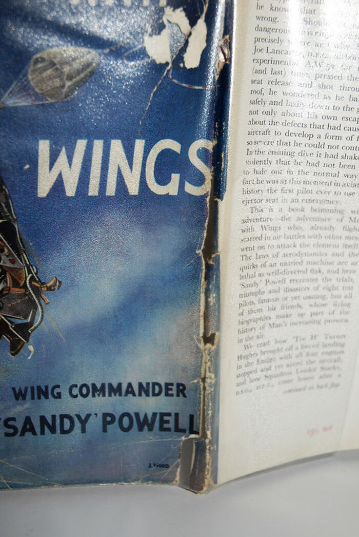 Dust wrapper with tears, discolouration, rubbing, damage to front and spine repaired on reverse with browned tape.