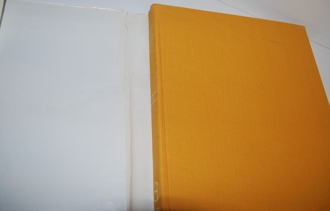 Dust wrapper tears and a little loss top/bottom of spine, edge and corner wear, creasing, discolouration, marks/scratches, repaired on reverse with tape.
