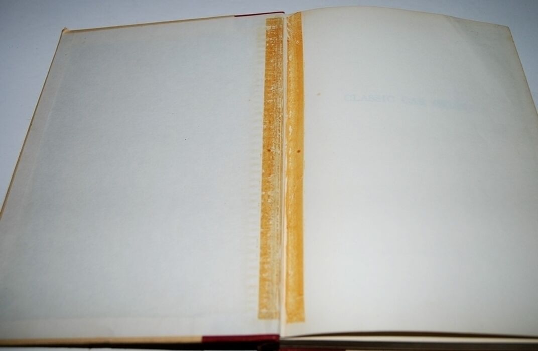 Inside board and Front Endpaper with browned sellotape mark along hinge.