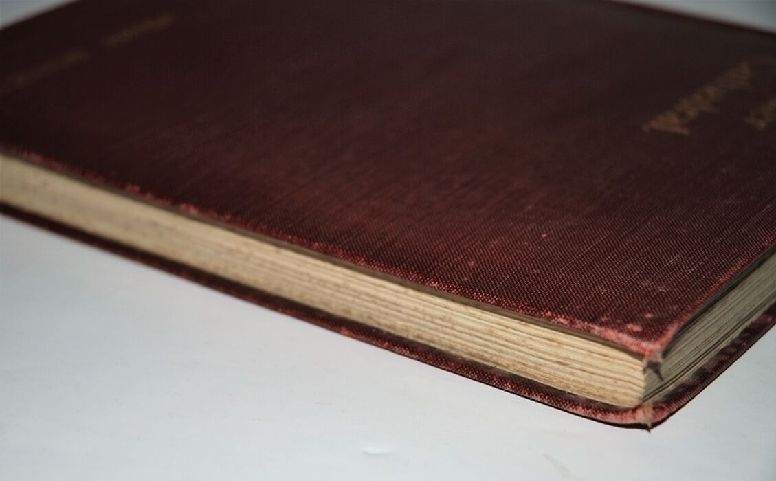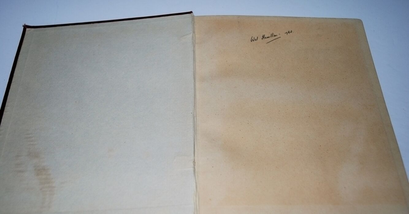 Name and date written on fep, Inside boards and Endpapers with Age discolouration.