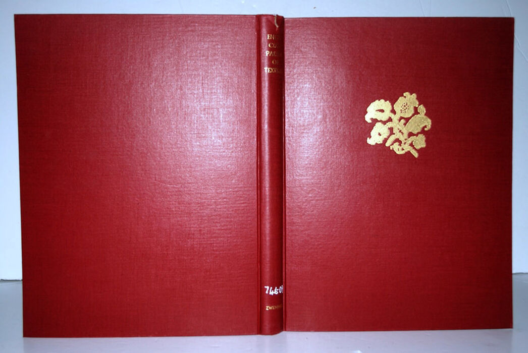Red boards with split top top of spine.