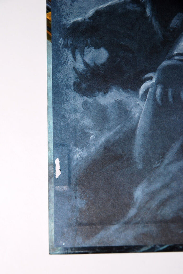 Box for the book with small surface tear leaving white paper mark to inside lid of box.