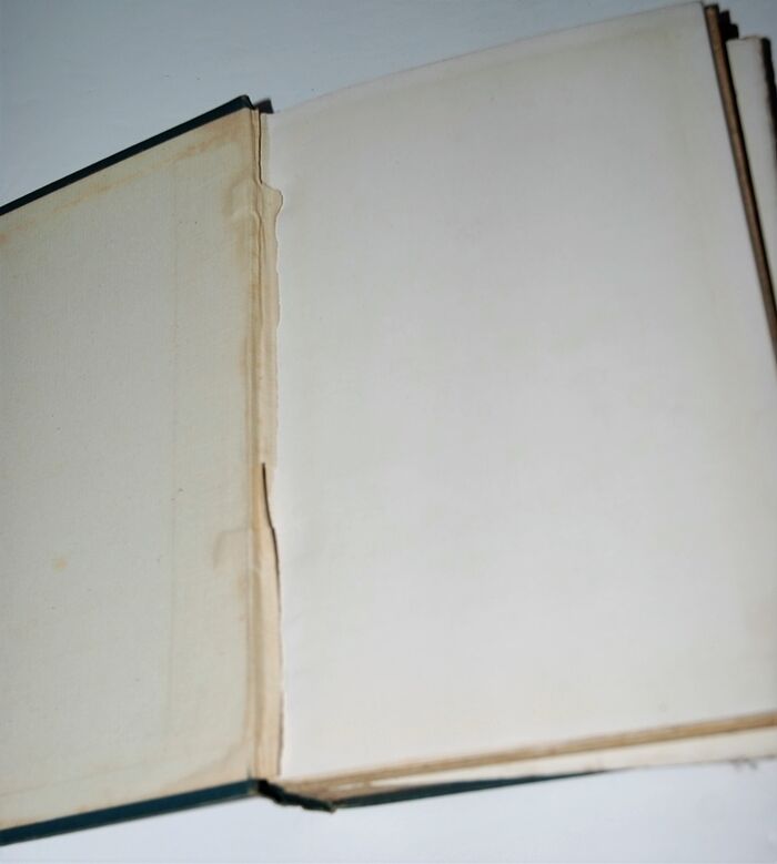 Top, Tail and Fore edge tanned, Fore edge with rough cut edge, Fep removed, Back Endpaper with discolouration strip.