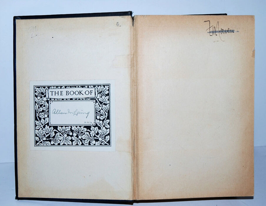 Bookplate on inside front board, Name written on fep.