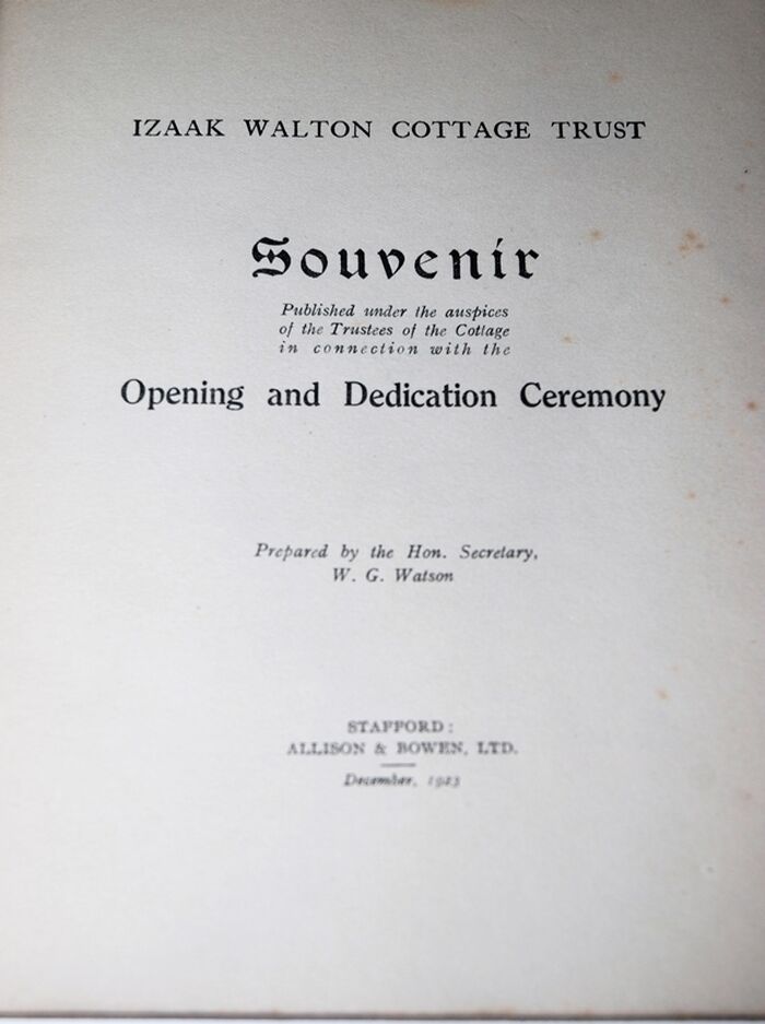 Izaak Walton Cottage Trust Souvenir of Opening Ceremony Souvenir Published