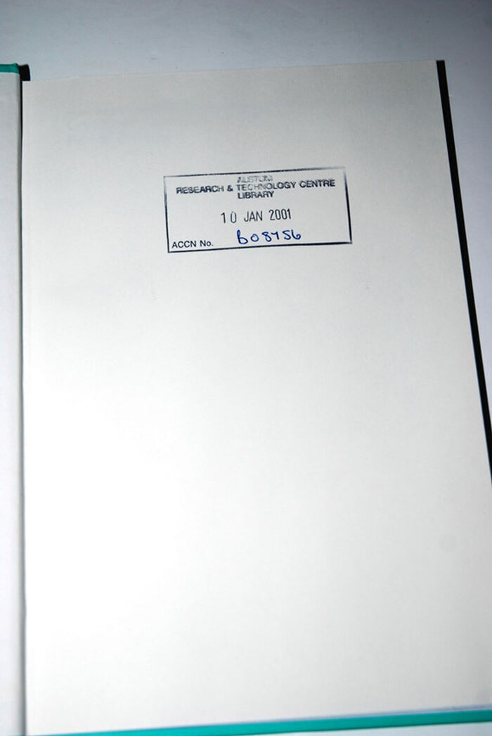 Endpaper stamped Alstom Research Centre Library - no other stamps.