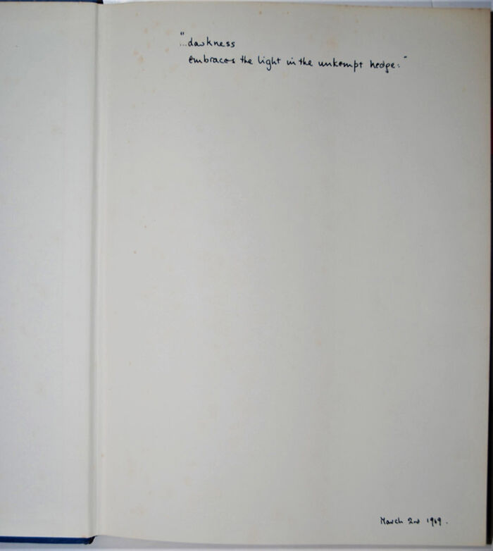 Quote/ inscription and date handwritten on front endpaper.