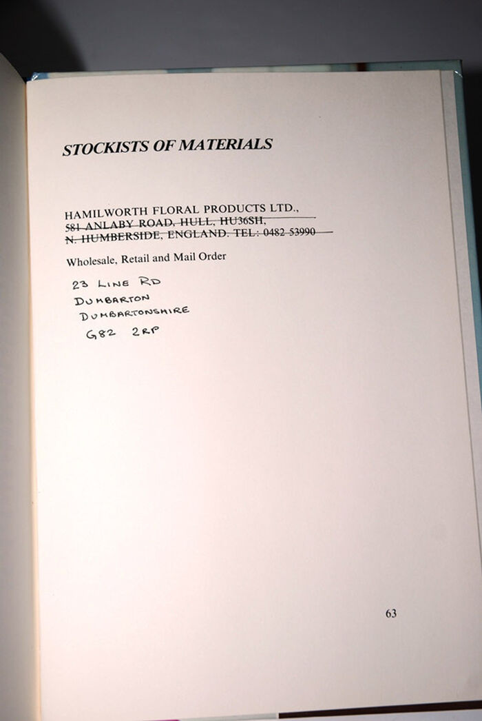 Hand written stockist details amended on back inside page.