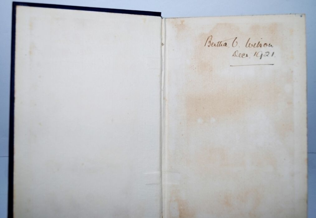 Inside covers and endpapers with discolouration and a few foxing type marks, Name and date written on fep.