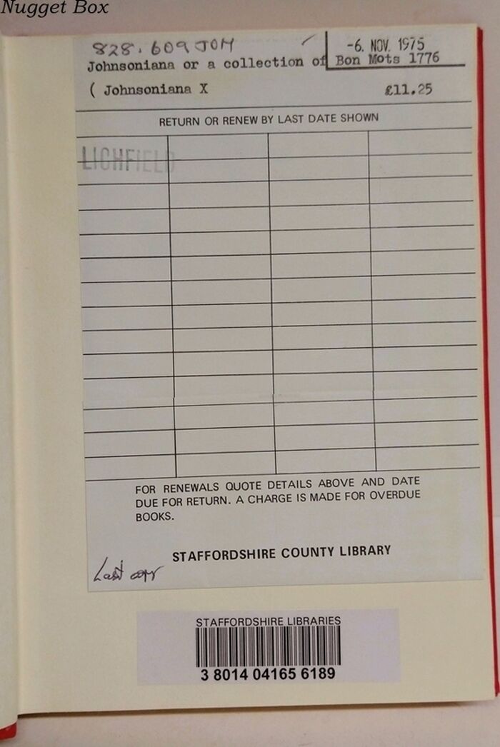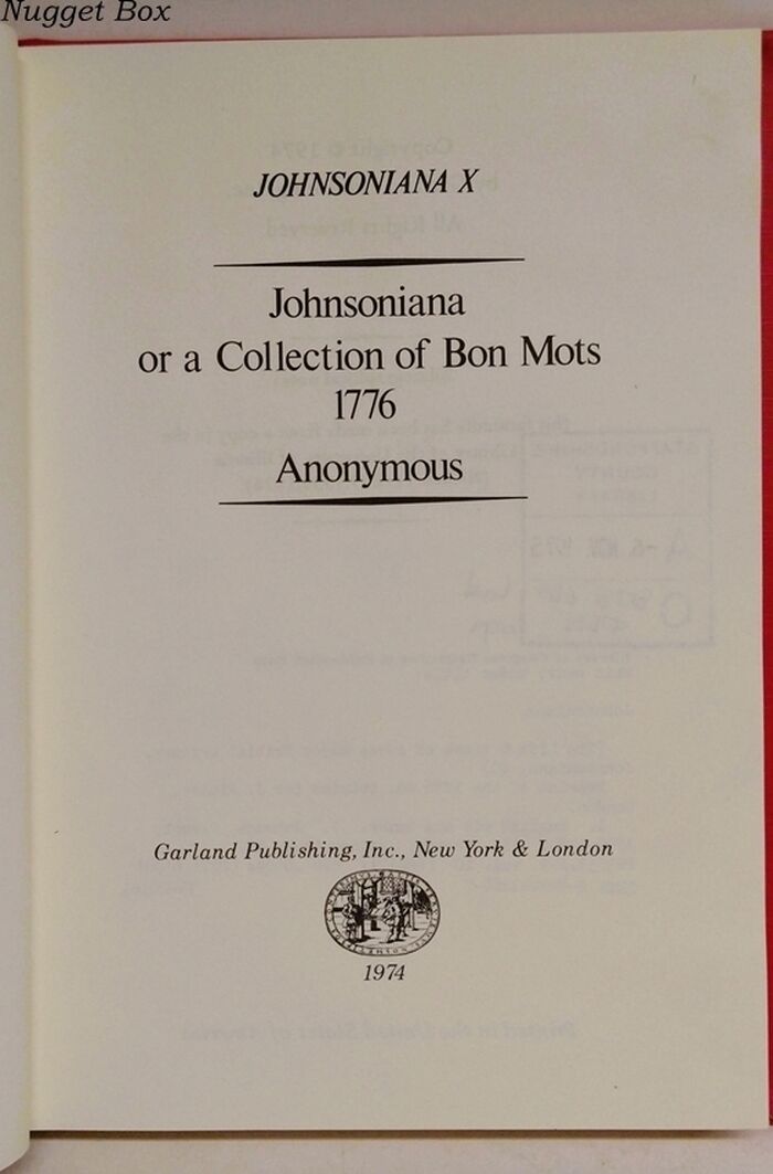 | Title | Johnsoniana X - Johnsoniana or a Collection of Bon Mots 1776 |