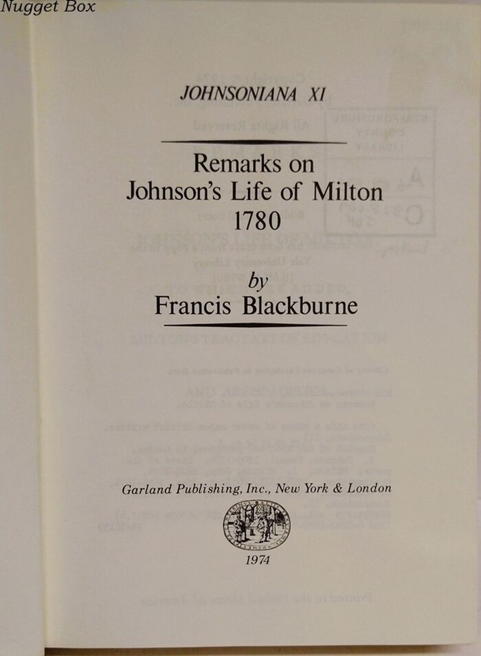| Title | Johnsoniana XI - Remarks on Johnson's Life of Milton 1780 |
