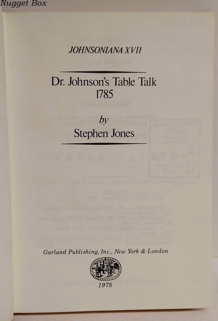 | Title | Johnsoniana XVII - Dr Johnson's Table Talk 1785 |