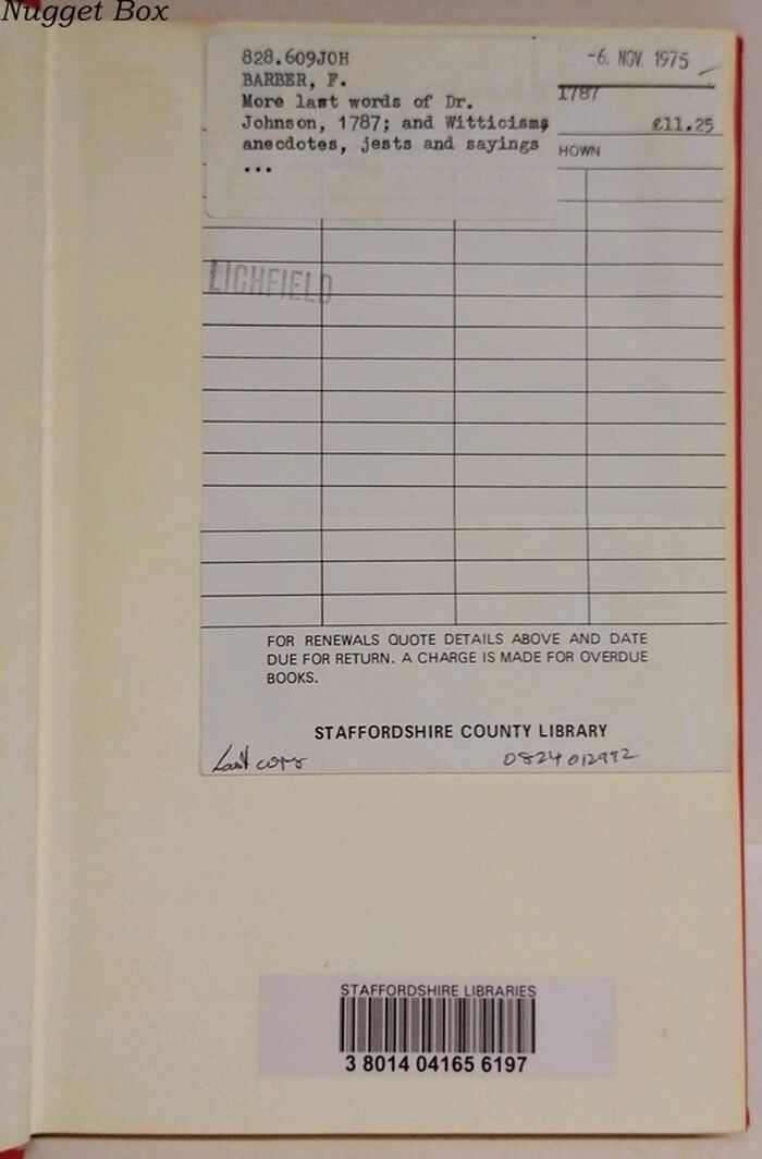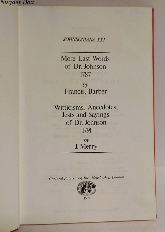| Title | Johnsoniana XXI - More Last Words of Dr. Johnson 1787 - Francis, Barber. |