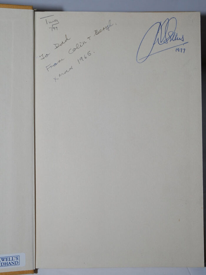 Small label on inside front cover, Gift inscription on fep.