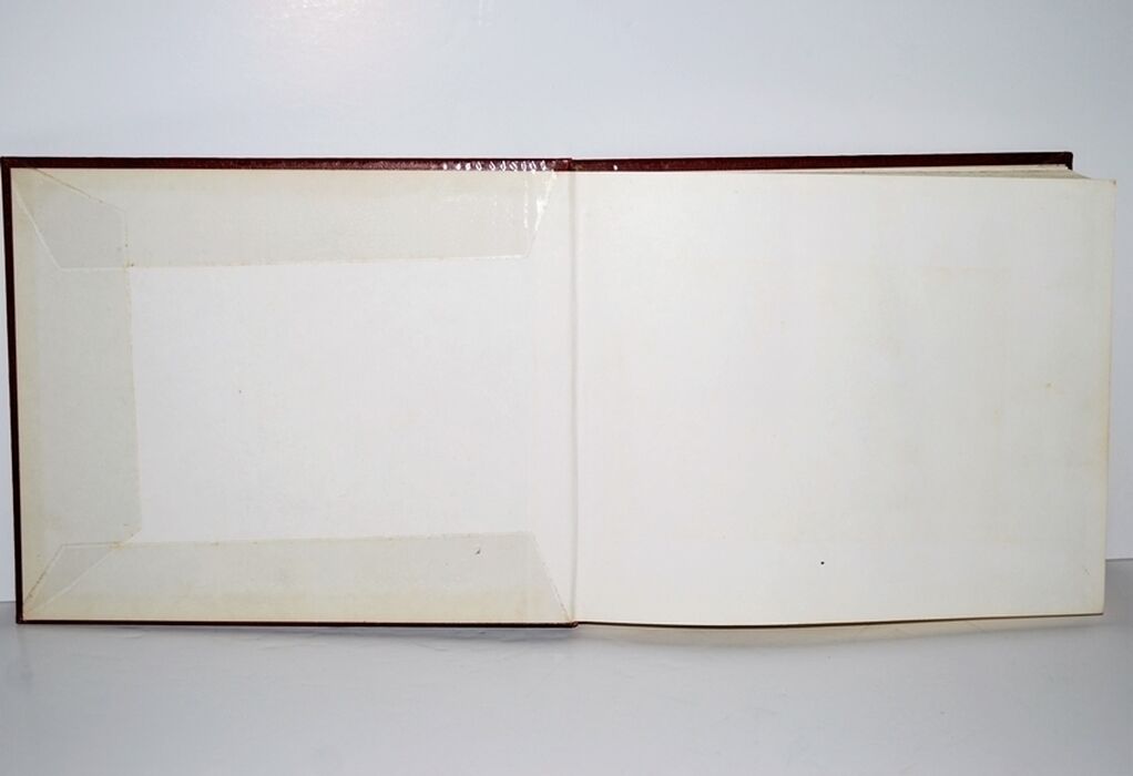 Boards have been covered with a transparent adhesive cover with tape on inside of boards, slight splitting to cover along spine edge.
