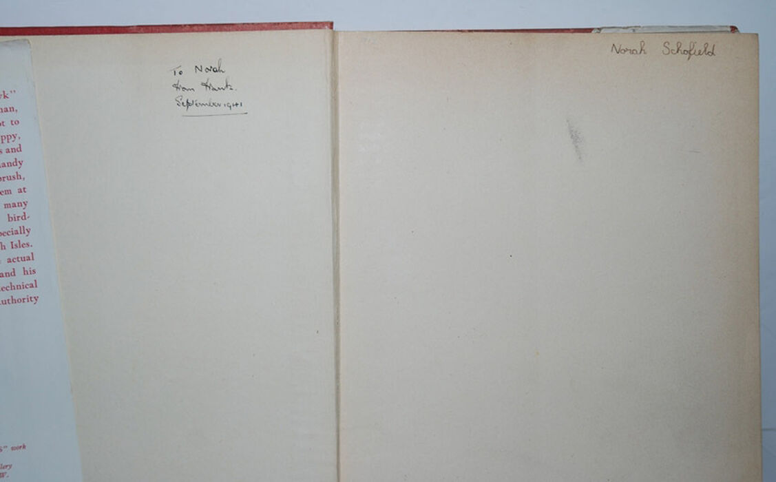 Names and date written on inside front board and fep.