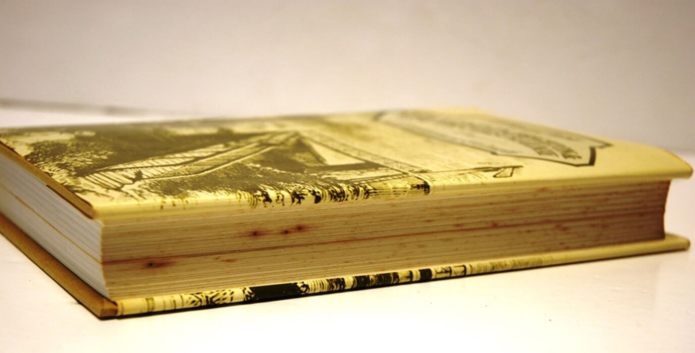 Light spotting/ age discolouration to free end papers, Top Tail & Fore Edge.
