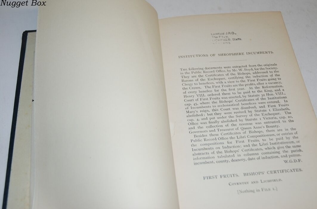 As this book has been rebound by Library the book starts at Institutions of Shropshire Incumbents then the next page is Page 8 on the reverse side - so we believe it to be complete.