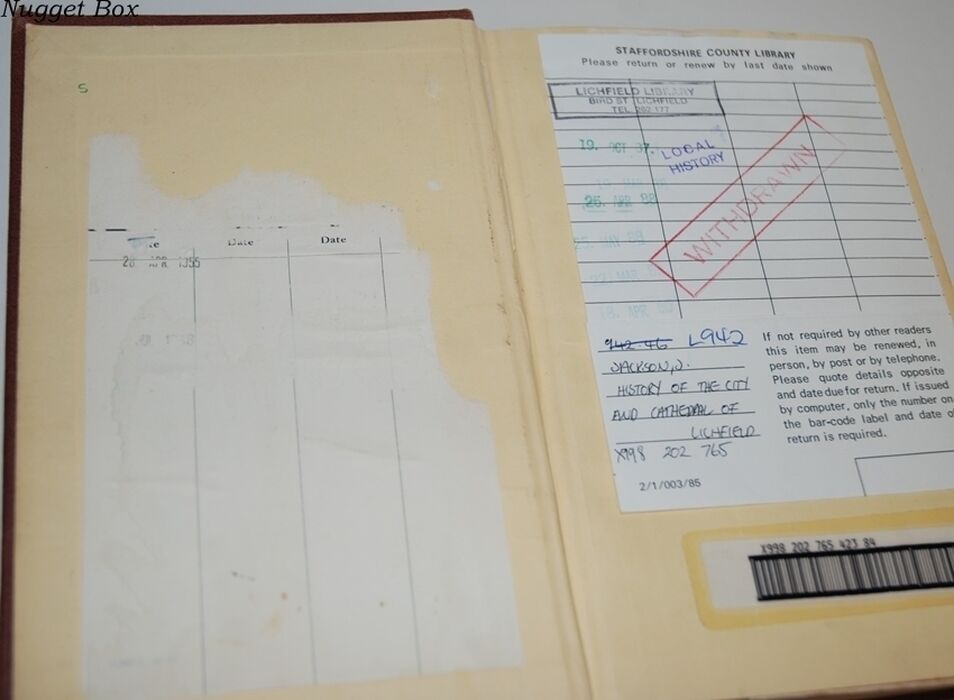 Usual stamps and markings, Library label & log sheet, reference numbers written on odd page along with the odd stamp as well.