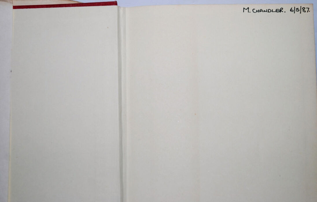 Endpapers with discolouration strip, Previous owners Name and Date written on fep.
