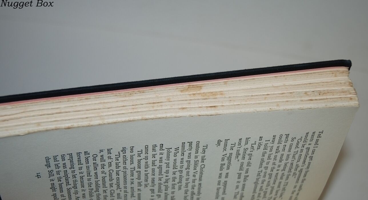 Top, Tail and Fore edge tanned with spotting, Fore and Tail edge with rough cut edges.