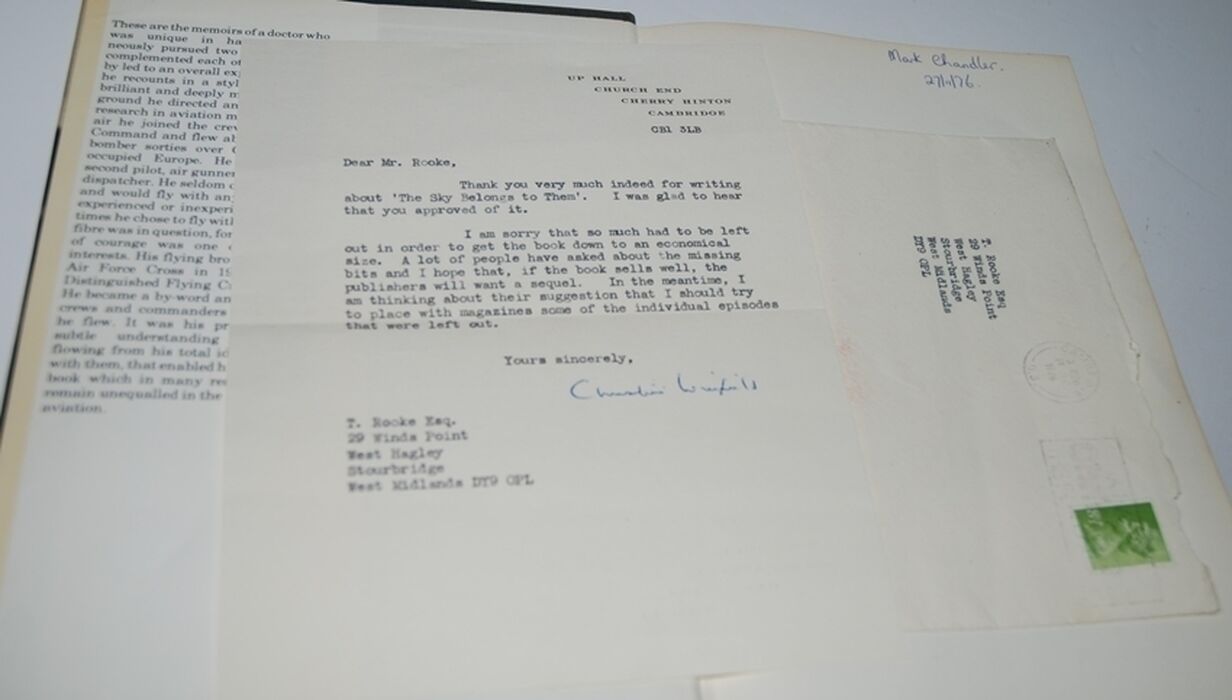 Letter from Christine Winifield in envelope stuck onto fep.